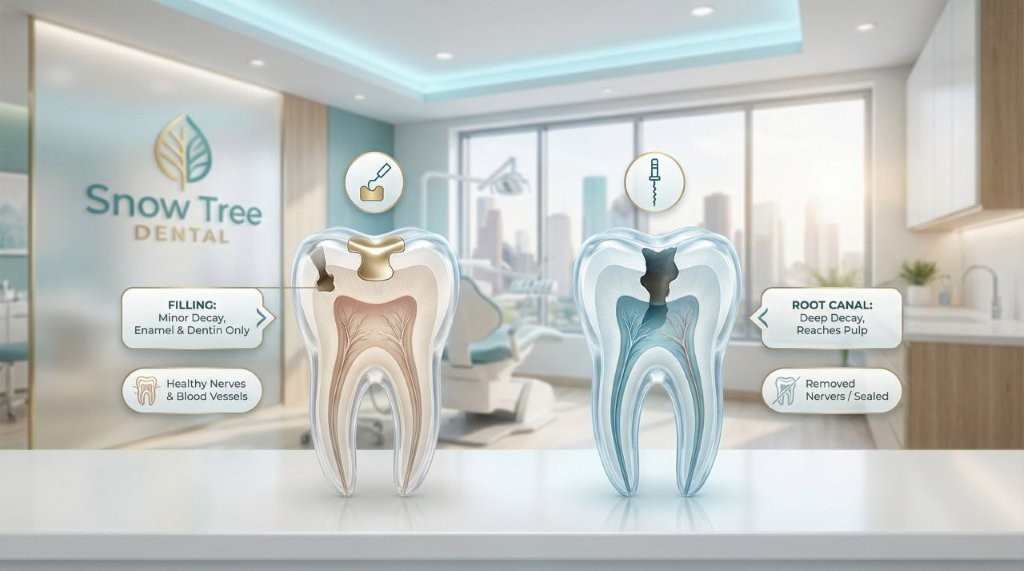 Quick answer: A filling is used for small cavities and early tooth decay treatment. A root canal is usually needed when decay reaches the inner pulp of the tooth and causes deeper inflammation or infection.